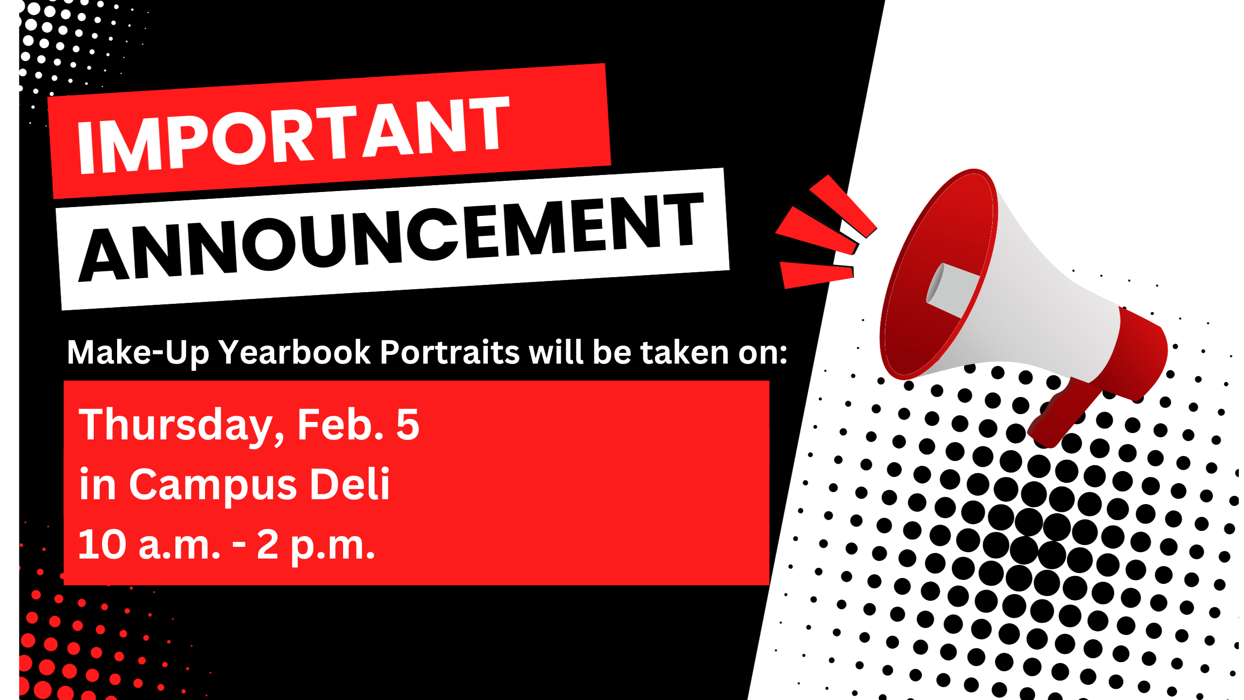 N’Focus Photography will be on the Holmes Community College Grenada Campus on Thursday, Feb. 5, from 10 a.m.-2 p.m. in the Campus Deli. This will be the last opportunity for students, faculty and staff to have their portrait taken for the 2026 yearbook!